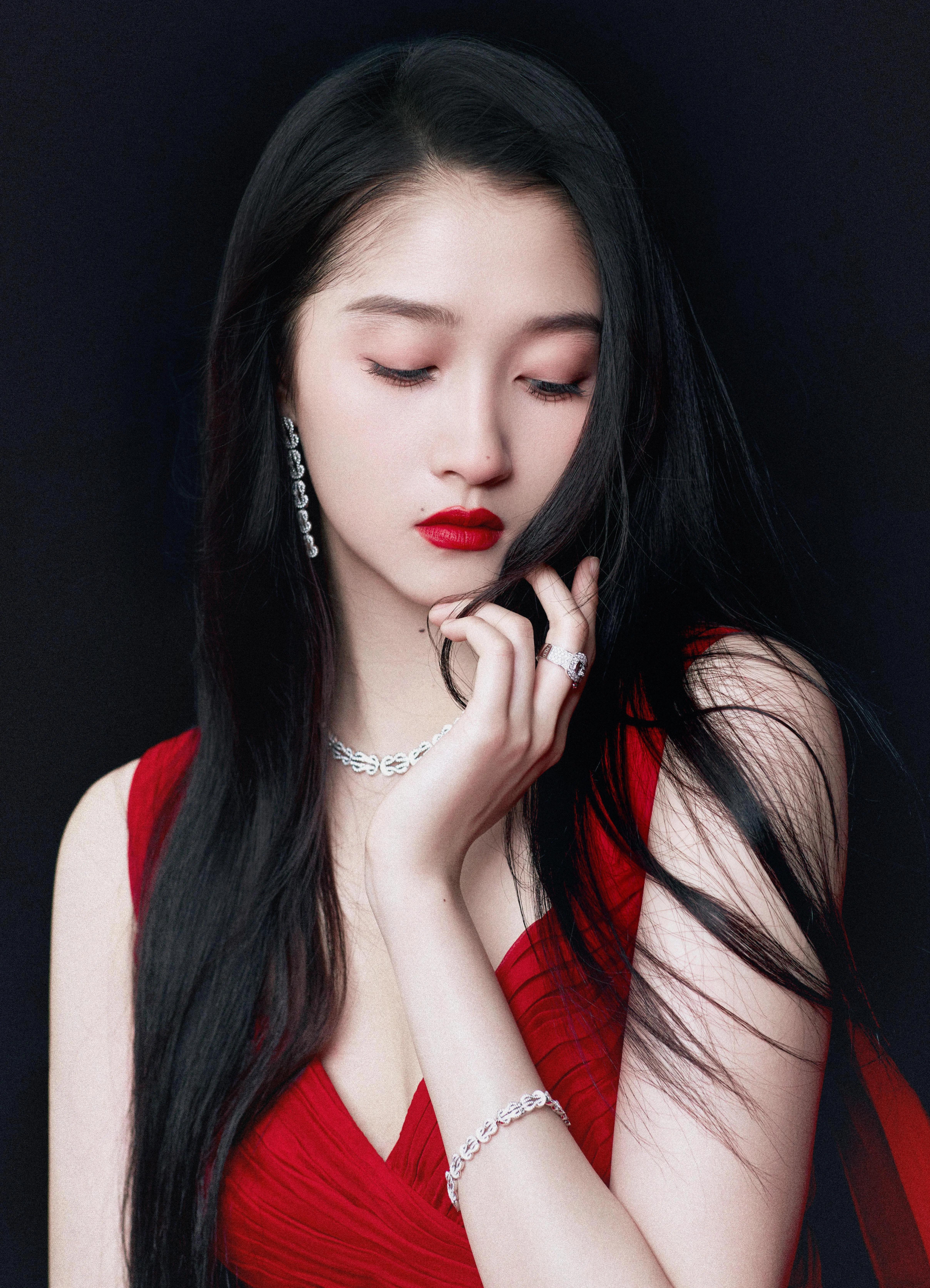 观察照片的整体构图,欣赏摄影师如何捕捉关晓彤的美丽瞬间。
