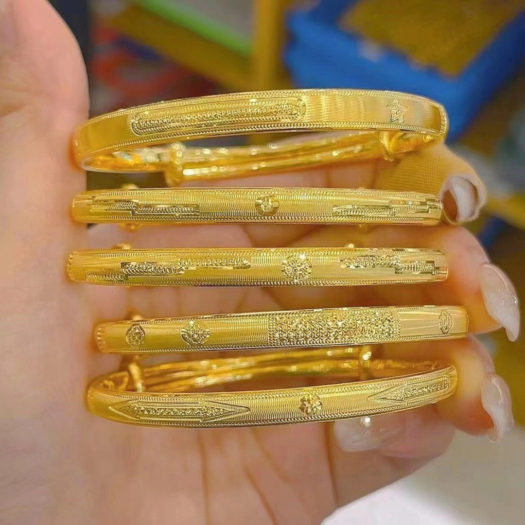 最新款黄金手镯设计独具匠心,融入了流苏、花朵、藤蔓等多种时尚元素,展现别样的个性风采,流苏设计的手镯轻盈飘逸,随着手腕的摆动展现出优美的舞姿,花朵和藤蔓设计充满生命力,仿佛大自然的美丽被定格在手腕间,这些独特设计让黄金手镯焕发新生,展现出无与伦比的魅力。