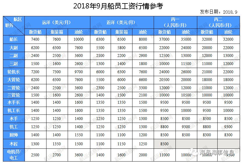 2、职务船员:如船长、轮机长等高级职务,工资水平相对较高。